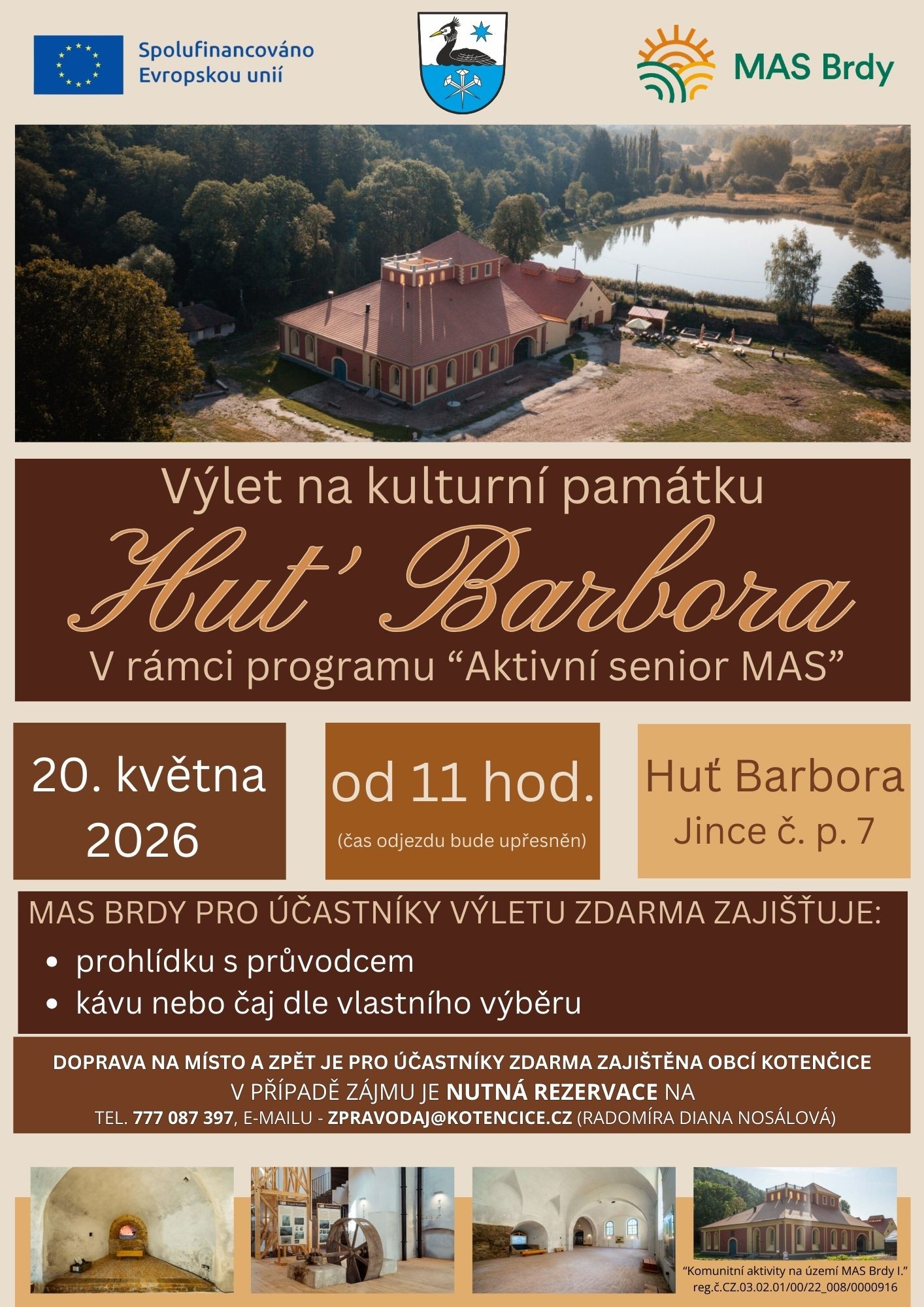 v rámci programu Aktivní senior MAS pořádá OU Kotenčice a MAS Brdy výlet na kulturní památku Huť Barbora.